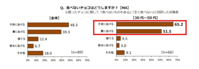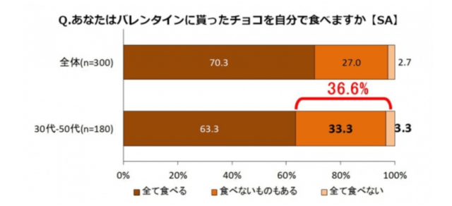2015年と少し古いデータだったのですが、サービス業「ジーユーエヌ」の調査によると、チョコレートをもらった男性の29.7%は食べないのだそう!